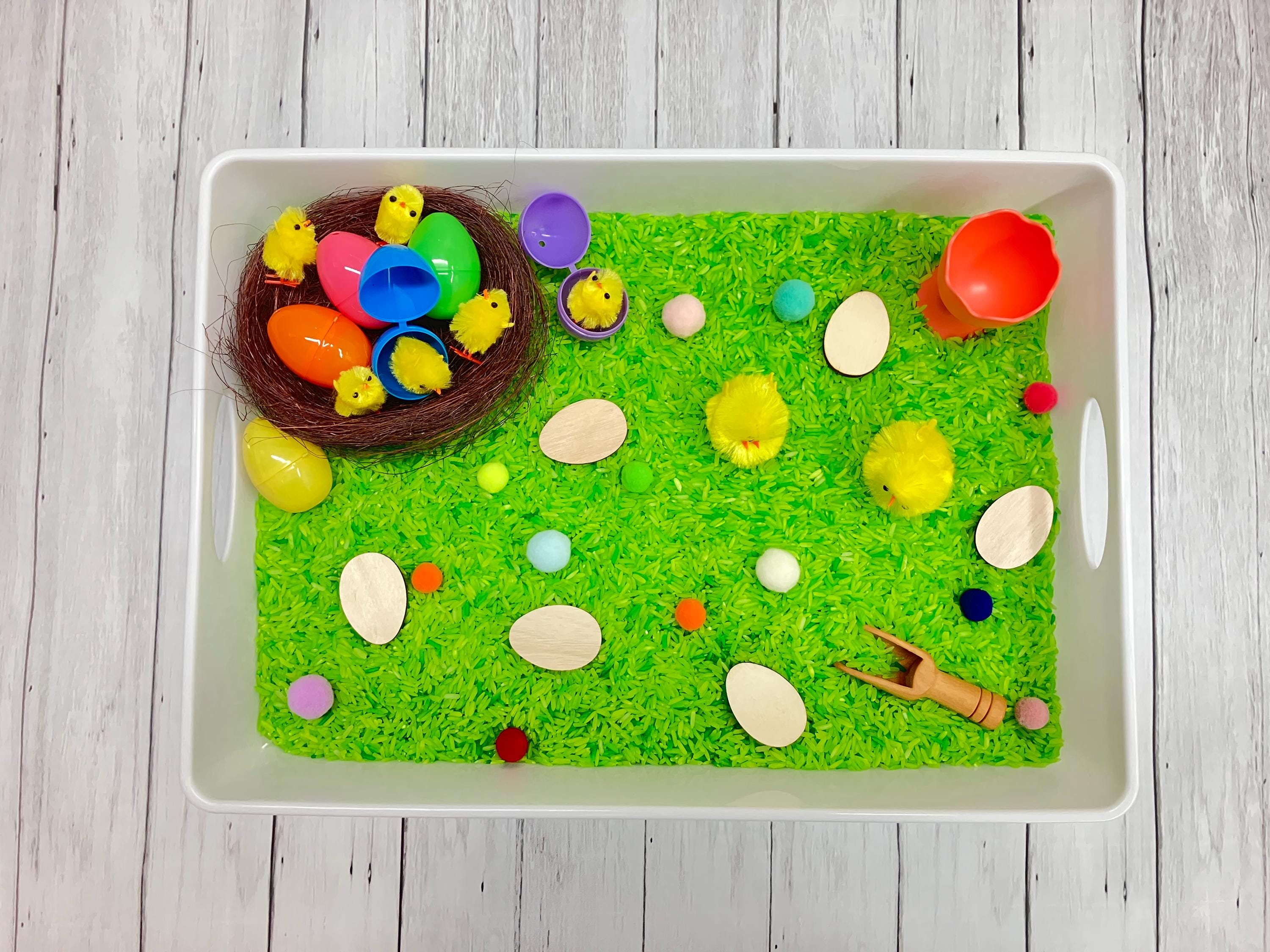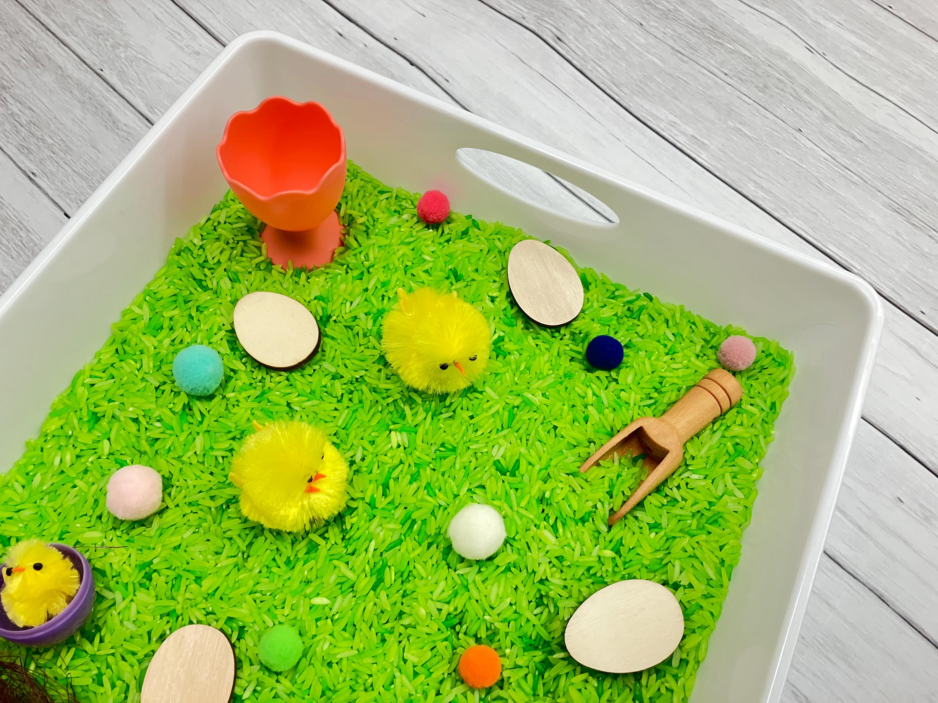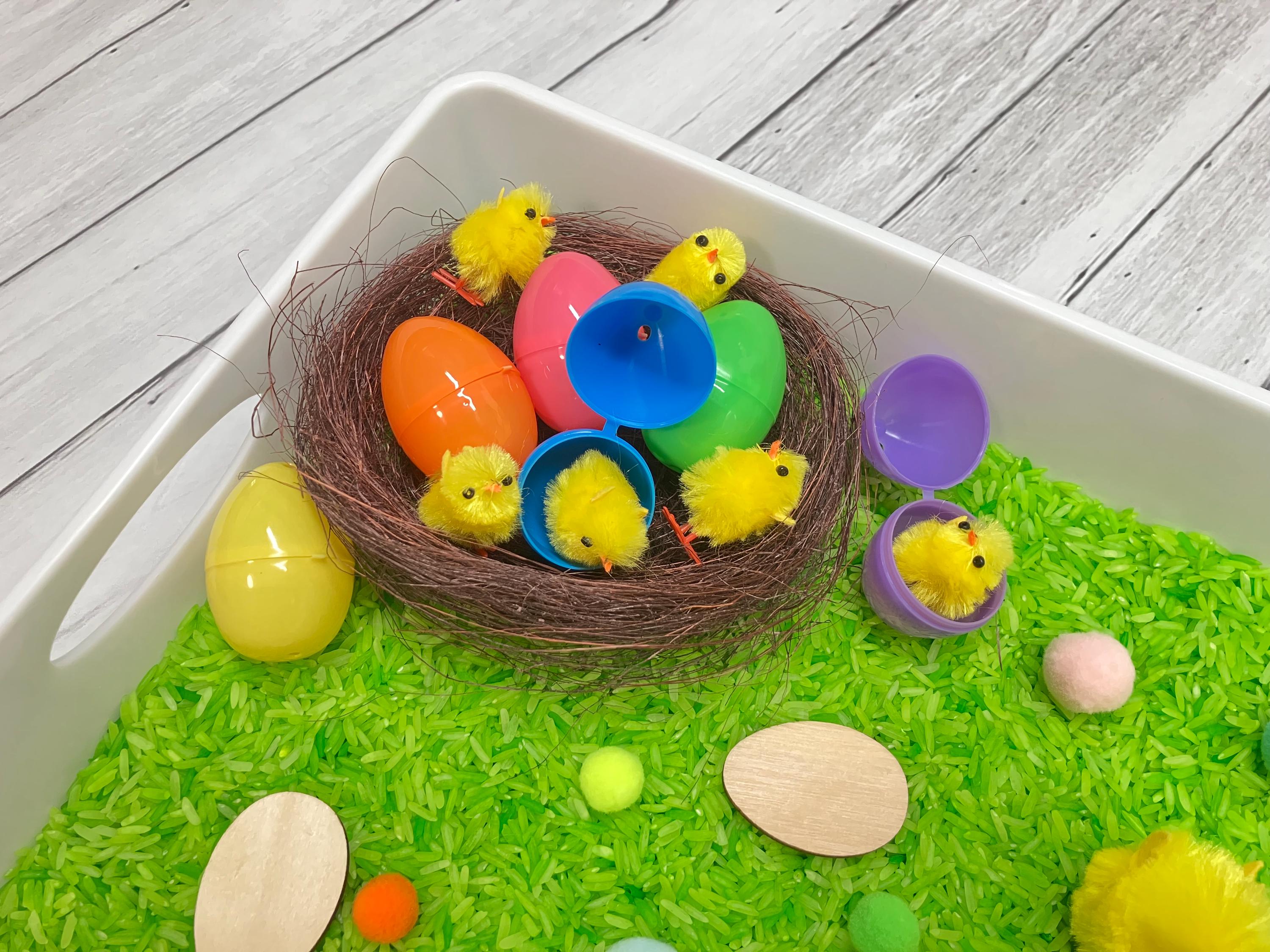 Easter Sensory Bin: Kids Activity Kit with Rice, Easter Eggs, Chicks